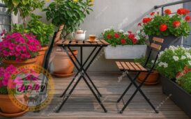 میز و صندلی چوبی فلزی مدل پیچک تاشو